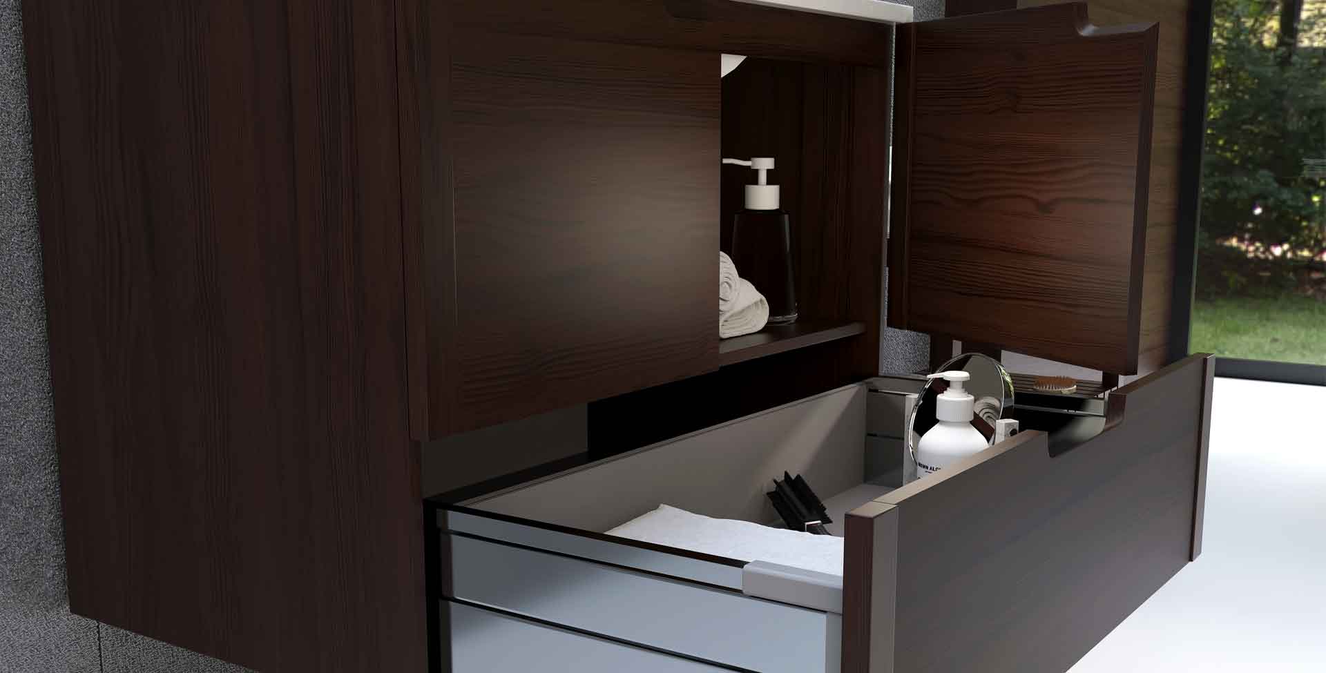 Cada modelo tiene sus propios muebles auxiliares de baño, muebles lavabo y medidas.