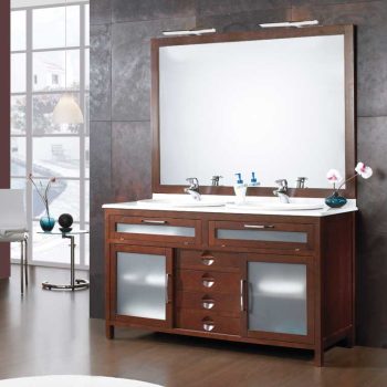 Los Muebles de Baño de la Serie Cardeñas están fabricados en madera de pino Radiata, libre de nudos y vaporizado entre 8º y 12º, para evitar movimientos en la madera. El acabado se realiza con varias capas de fondo con barniz de poliuretano y acrílicos, terminado con barniz de poliuretano y acrílicos con alta resistencia a la luz, temperatura y humedad y se aplica tanto al exterior como al interior y trasera. El cristal es de alta calidad, los herrajes que trabajamos son de primeras marcas, ejemplo Hettich, y los apliques de luz de Led y anticorrosivos.