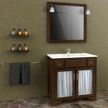 Los Muebles de Baño de la Serie Cardeñas están fabricados en madera de pino Radiata, libre de nudos y vaporizado entre 8º y 12º, para evitar movimientos en la madera. El acabado se realiza con varias capas de fondo con barniz de poliuretano y acrílicos, terminado con barniz de poliuretano y acrílicos con alta resistencia a la luz, temperatura y humedad y se aplica tanto al exterior como al interior y trasera. El cristal es de alta calidad, los herrajes que trabajamos son de primeras marcas, ejemplo Hettich, y los apliques de luz de Led y anticorrosivos.