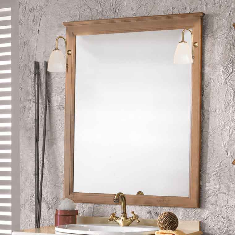 El Espejo de Baño Clásic, es un espejo perfecto para baños rústicos. Está disponible en 80, 100, 120 y 140 cm. Un espejo rústico enmarcado en marco de madera, con trasera y una pequeña cornisa en la parte superior. Elaborado en madera de pino Radiata, libre de nudos y vaporizado entre 8º y 12º, para evitar movimientos en la madera. Fabricado en ESPAÑA por el prestigioso fabricante de muebles de baño Arpa Baño.