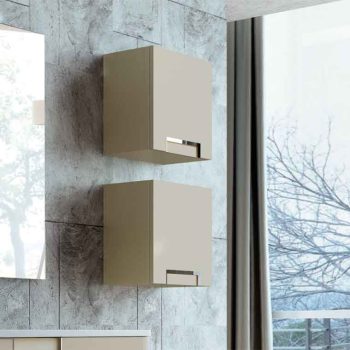 El interior de cada armario del mueble auxiliar baño Suspendido Mar de Campoaras está dividido por una balda para aprovechar al máximo el espacio interior.