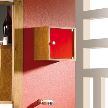 El interior de cada armario del mueble auxiliar baño Suspendido Luna está dividido por una balda para aprovechar al máximo el espacio interior.