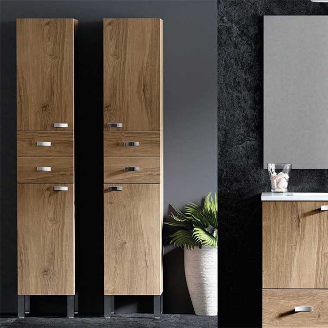 El Mueble Auxiliar de Baño Columna Vega, distribuido en 2 puertas y 2 cajones, es un complemento perfecto para los muebles lavabo Vega. Te ayudará a aumentar la capacidad de almacenamiento total en tu baño y conseguirás que tu aseo esté siempre recogido. Elaborado en Melamina de alta densidad y frontales en DMD. Fabricado en ESPAÑA por el fabricante de muebles de baño Creaciones Campoaras.