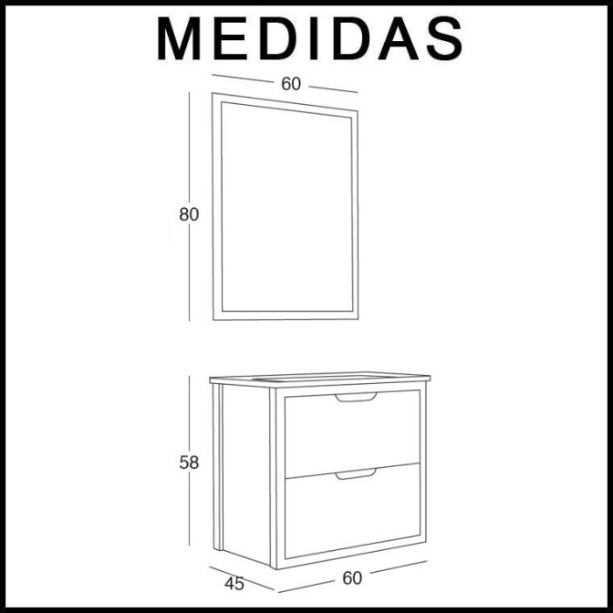 - Espejo Mueble de Baño Ángeles 60 cm. 2 cajones
