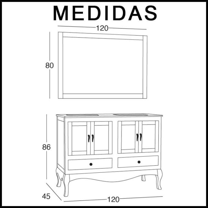Características Mueble de Baño Coral 120 cm. 4 puertas 2 cajones