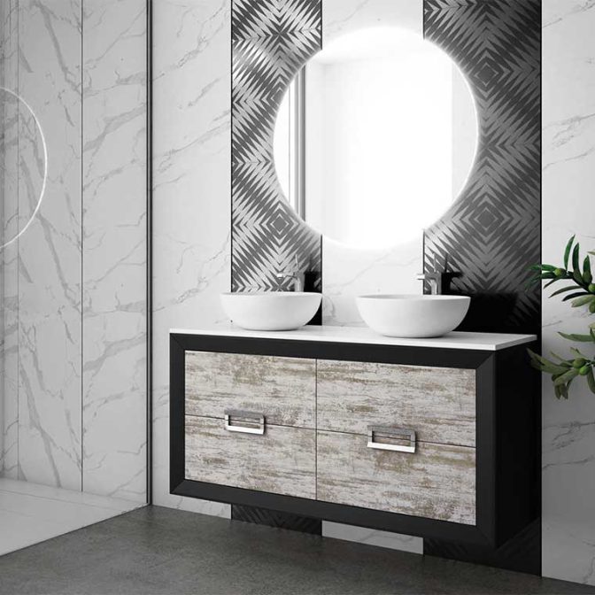 Para este conjunto de baño hemos elegido el Espejo de Baño Circle Retroiluminado.