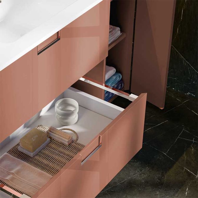 Las guías de los cajones y las bisagras de las puertas, influyen directamente en la vida de tu mueble de baño, no te la juegues con unas de baja calidad.