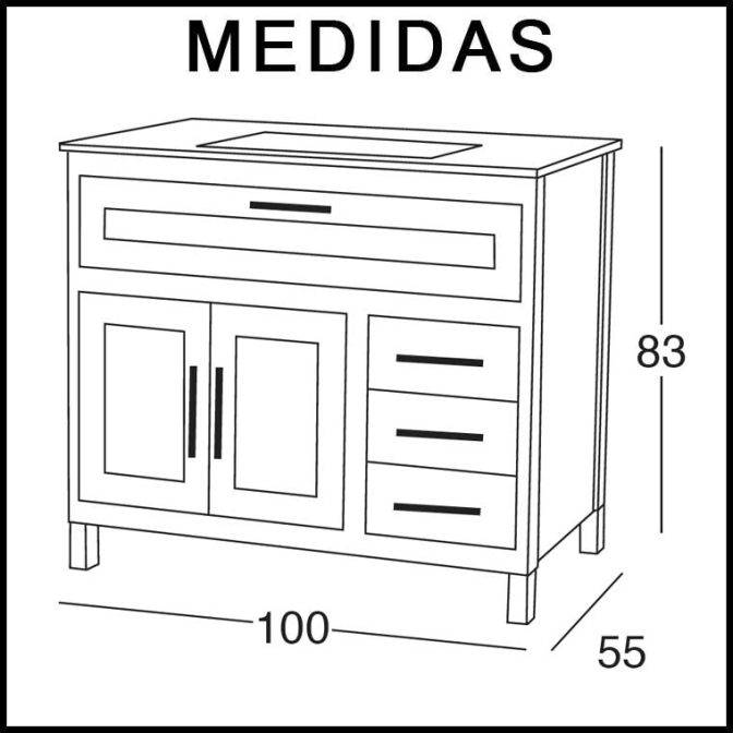 100 cm. de Ancho x 83 cm. de Alto x 55 cm. de Fondo.